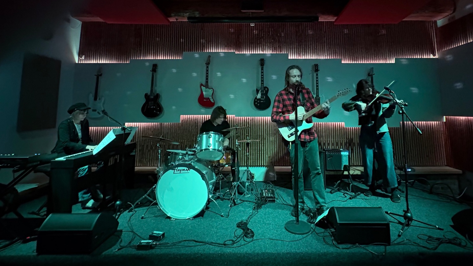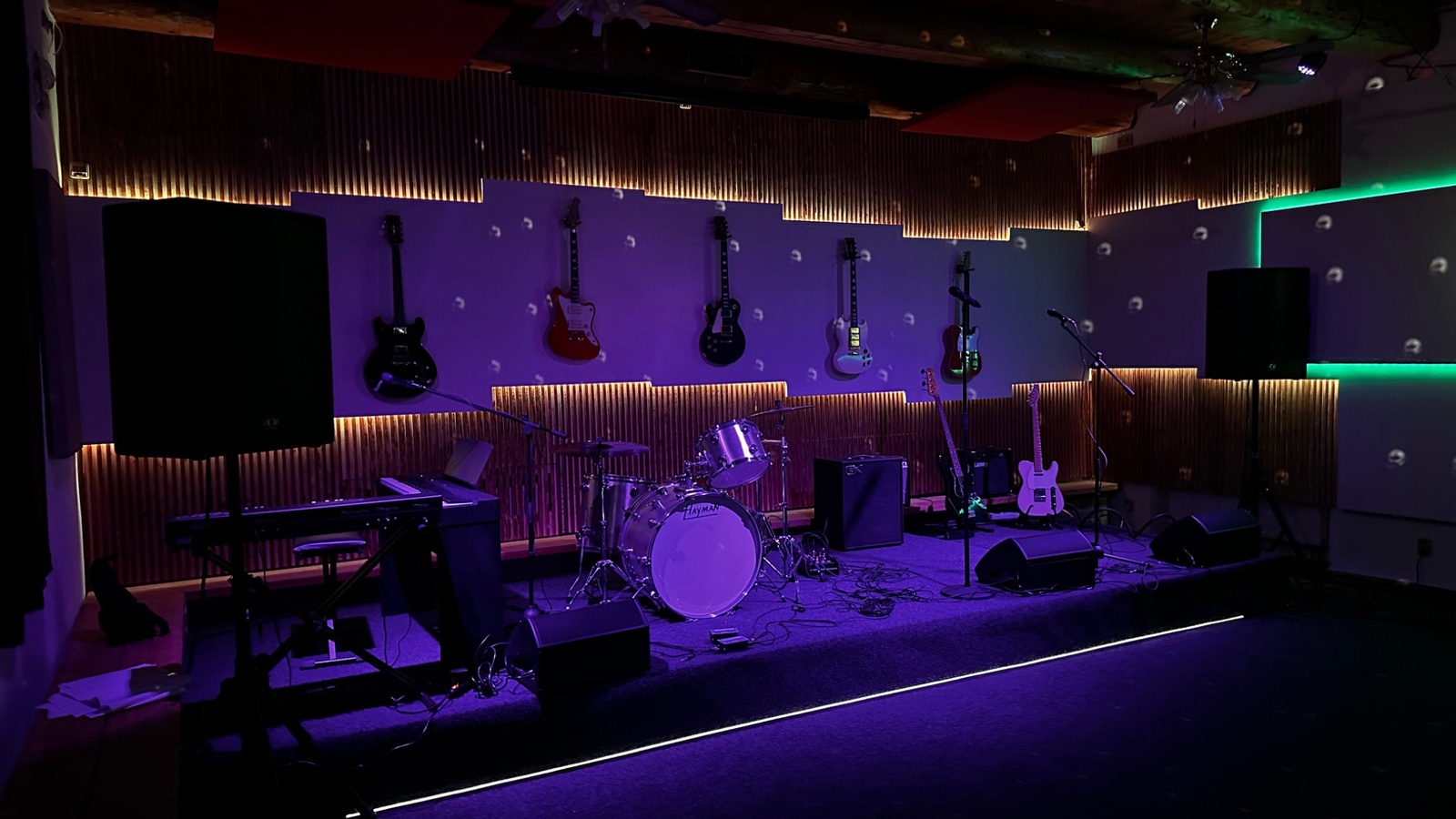 The venue includes a music hall with a stage, as well as a bar and wine bar, which allow for convenient refreshments for guests.